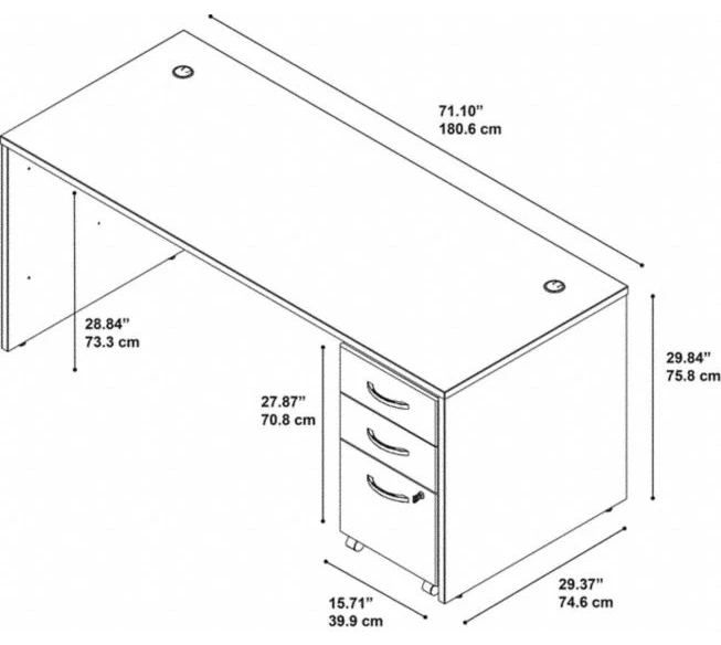 The Bush Business Furniture Series C 72W x 30D Office Desk has everything you need for a productive workday and the professional-grade quality you’ll depend on for years of use. Set up your laptop, phone and more while spreading out with projects on the roomy 72W surface. Feed your cables through the Desk to keep them out of your way, and enjoy the professional appearance of clean lines, extended modesty panels and Brushed Nickel hardware. Rugged edge banding and the thermally fused laminate finish fend off damage, while the Mobile File Cabinet rolls under the Desk surface or anywhere you please. A lock secures the lower 2 drawers for your security, and the full-extension file drawer glides on smooth ball bearing slides for an effortless reach to the back. The options are endless with Series C. This affordable office furniture boasts quality craftsmanship to withstand the rigors of a 40-plus hour week. Seven stylish finishes blend seamlessly in any environment. Multiple layout options meet the needs of numerous workspaces, from the private or home office to reception areas and conference rooms. Series C evolves with your preferences, allowing you to reconfigure your workspace as required with a complete line of coordinated commercial office furniture. American made with U.S. and imported parts.