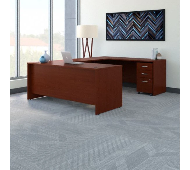 Bush Series C Mahogany 72W x 30D U Station with 3 Drawer Mobile Pedestal – SRC091MASU