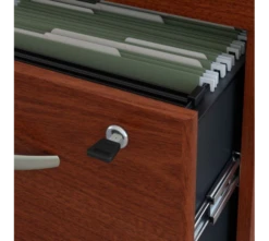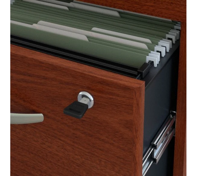* Mobile File Cabinet rolls under the Desk or wherever you need it, and a single lock secures the lower 2 drawers