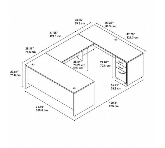 * Wraparound U Shaped Desk design provides all the workspace you require to spread out and multitask