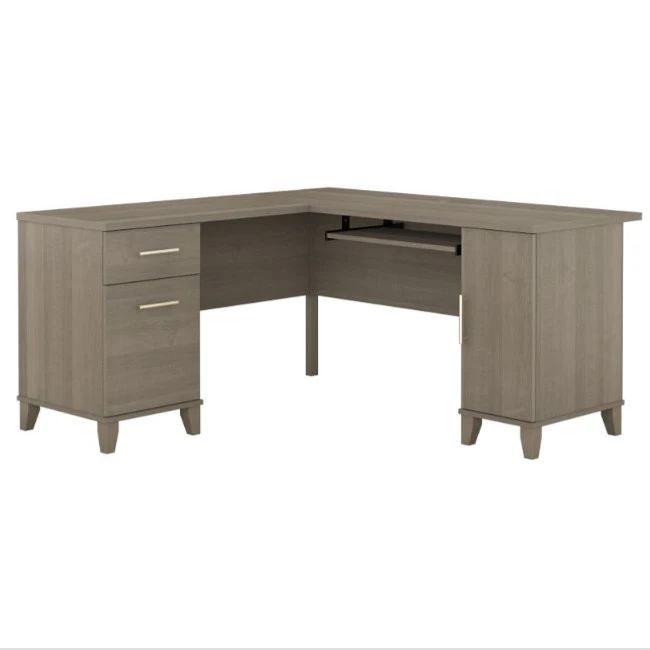 Bush Furniture Somerset 60W L Shaped Desk in Ash Gray – WC81630K. Make a professional statement while maximizing the potential of your home office with the Bush Furniture Somerset 60W L Shaped Desk.