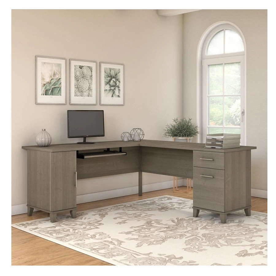 Bush Furniture Somerset 72W L Shaped Desk in Ash Gray – WC81610K. Make a professional statement while maximizing the potential of your home office with the Bush Furniture Somerset 72W L Shaped Desk.
