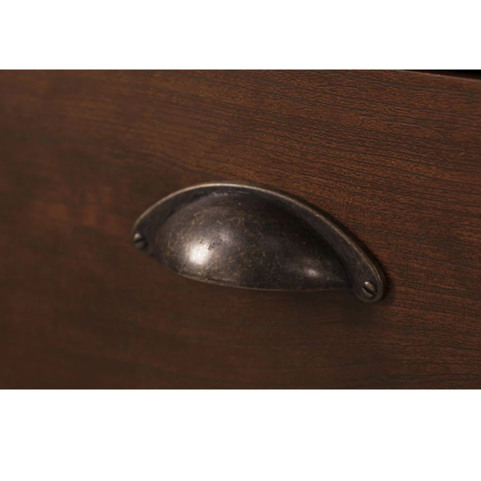 * Antique Cherry finish accented by oil-rubbed Bronze drawer pulls and beveled edge detailing