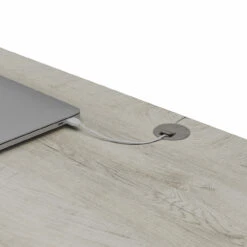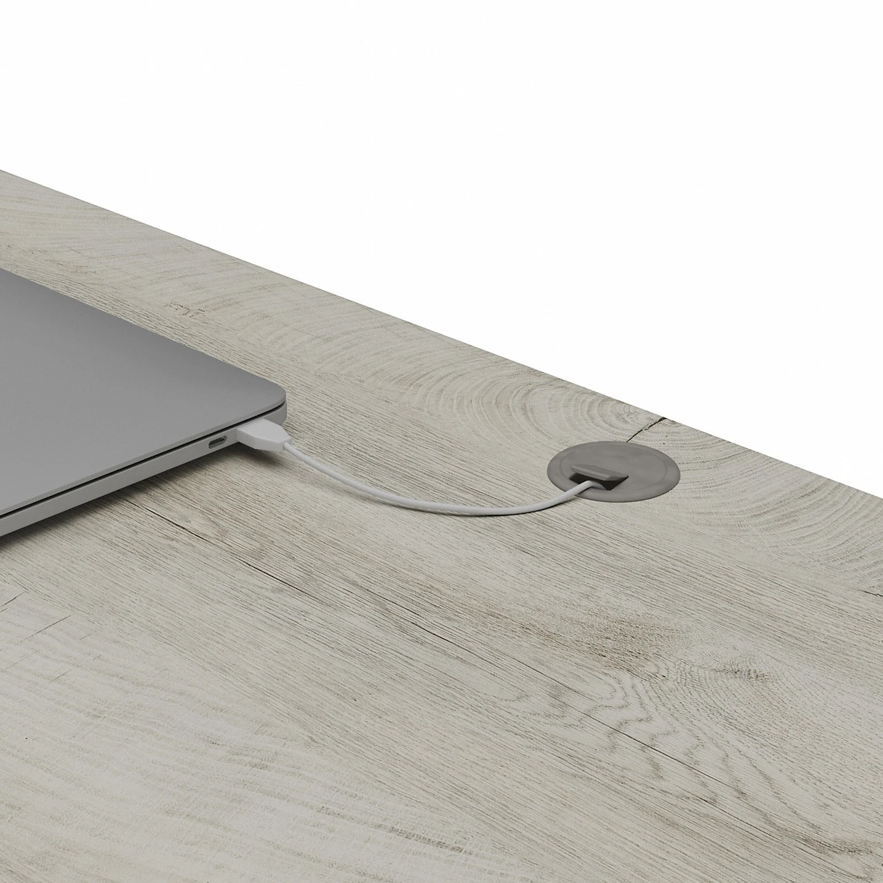 * Corner desk surface includes built-in wire management to keep cords and cables out of the way