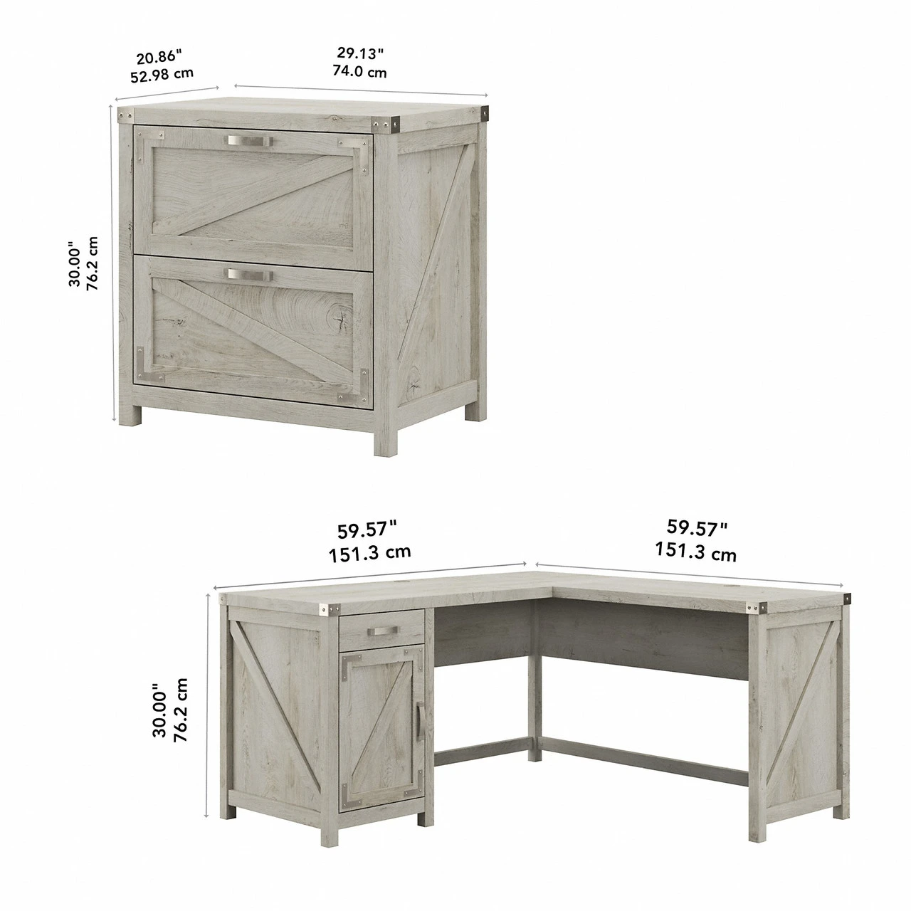 Kathy Ireland® Home by Bush Furniture Cottage Grove 60W L Shaped Desk with 2 Drawer Lateral File Cabinet in Cottage White – CGR004CWH