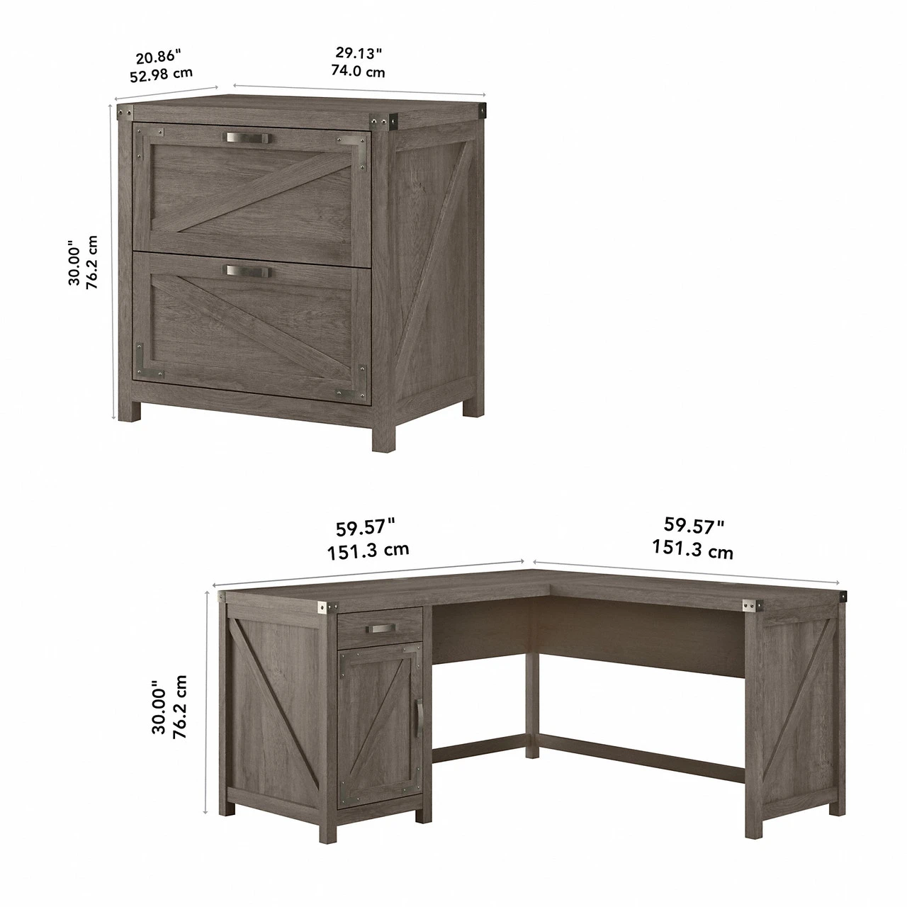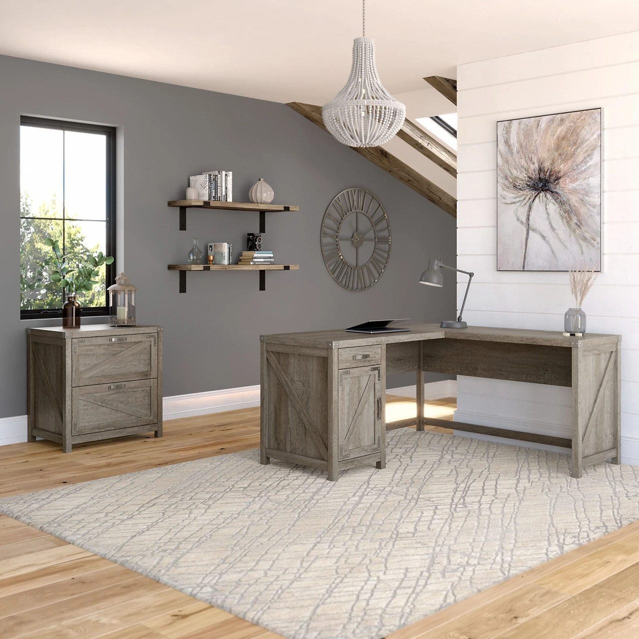 Kathy Ireland® Home by Bush Furniture Cottage Grove 60W L Shaped Desk with 2 Drawer Lateral File Cabinet in Restored Gray – CGR004RTG