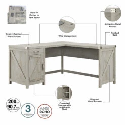 Kathy Ireland® Home by Bush Furniture Cottage Grove 60W L Shaped Desk with Drawer and Storage Cabinet in Cottage White – CGD160CWH-03
