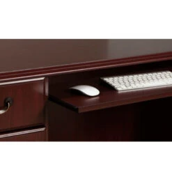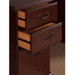 * Three file drawers hold letter, legal, or A4 files (one drawer in left pedestal, two in right pedestal)