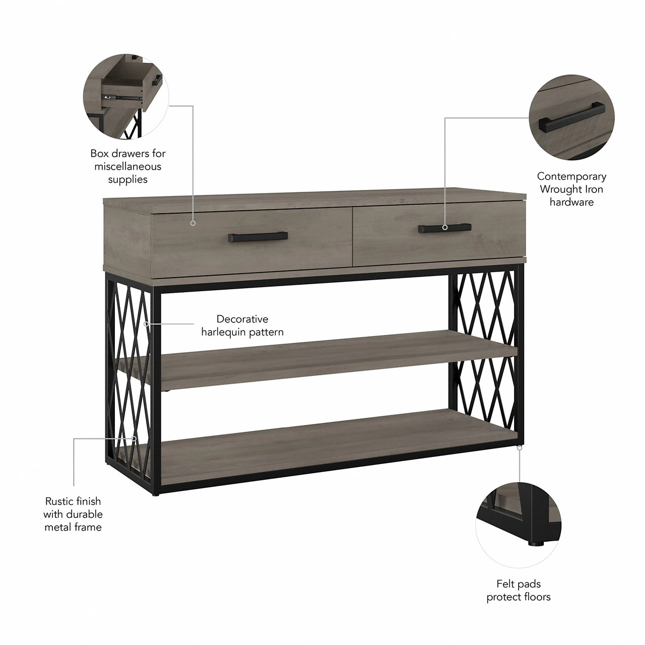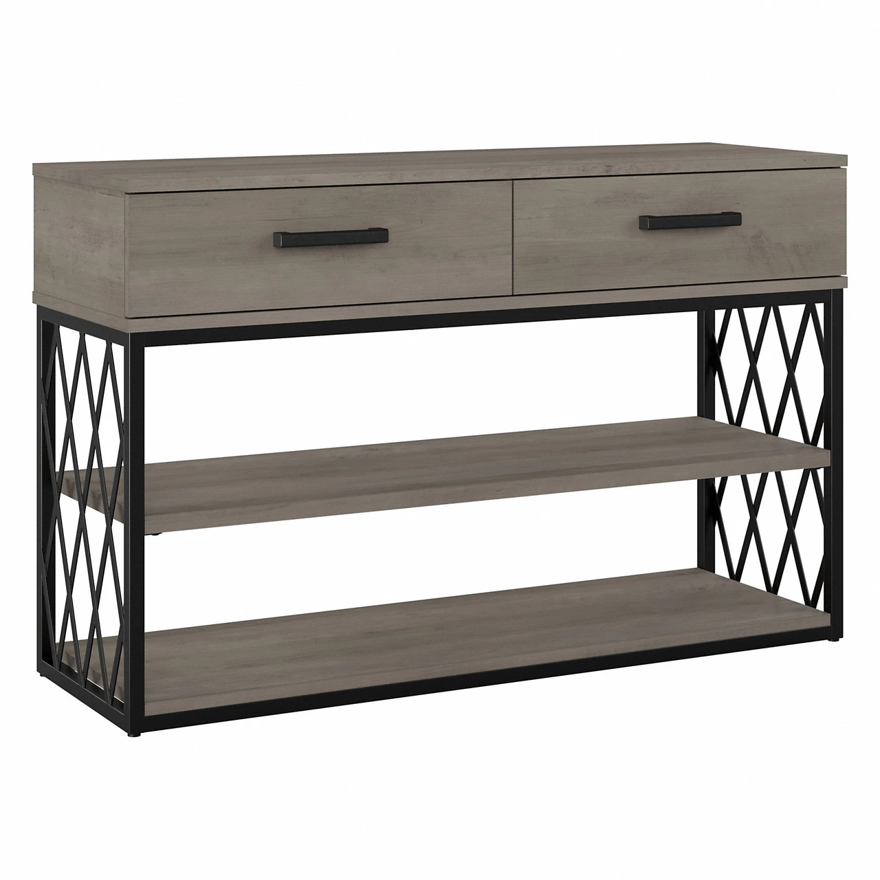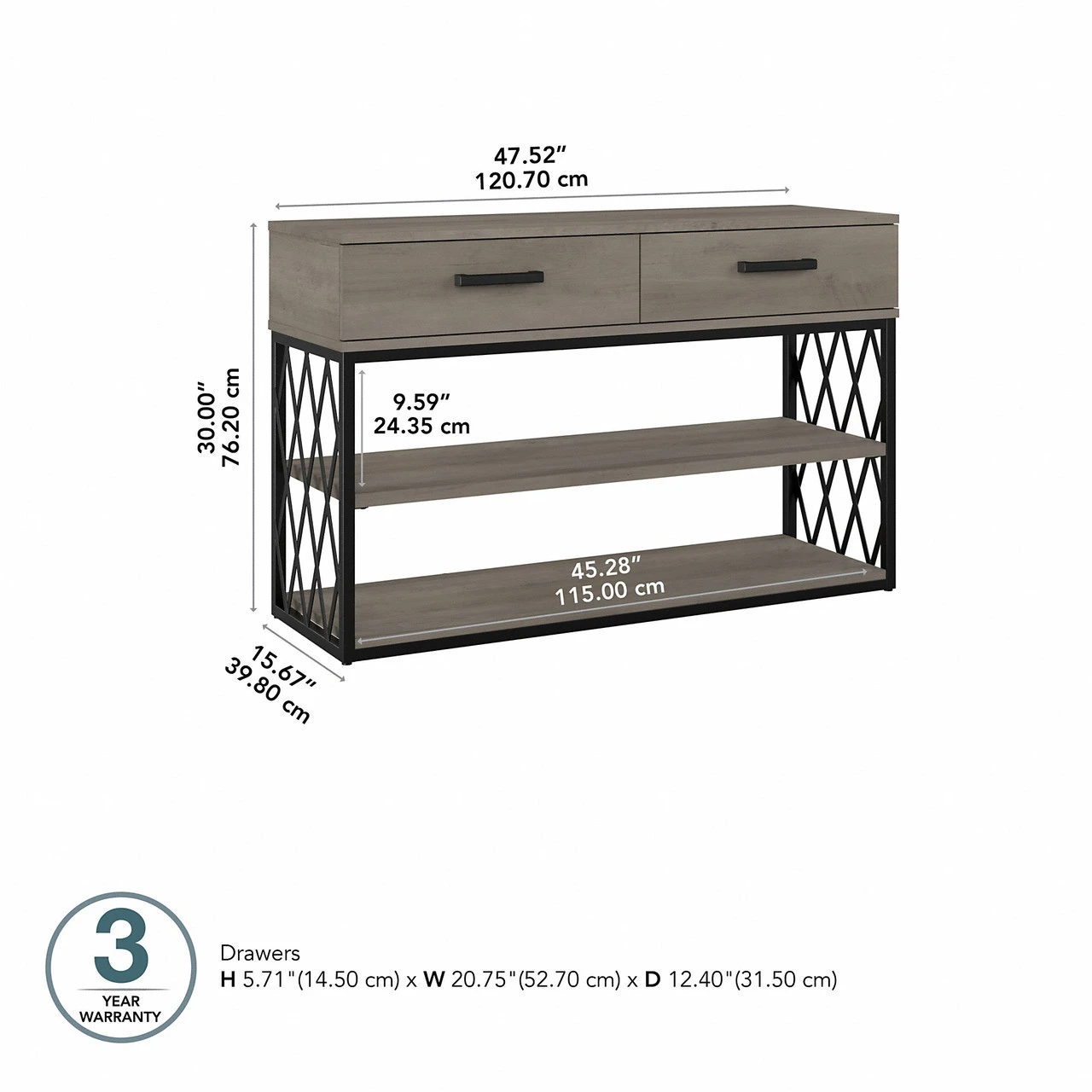 kathy ireland Home by Bush Furniture City Park Industrial Console Table with Drawers and Shelves – CPT148DG-03