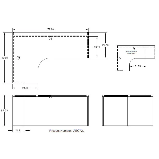 * Dimensions: 72W x 48D L-Side x 24D Return Side x 29.5″ H