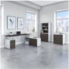 Mayline Medina Series Suite 08 – Executive 72″ Desk with Return on Left. Right Curved Desk Extension and Low Wall Cabinet, Mocha  – MNT8-LDC
