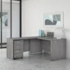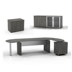 Mayline Medina Executive 72″ Desk with Right Return, Left Desk Extension, Low-Wall Cabinet, Lateral File Cabinet, Gray Steel – MNT15-LGS