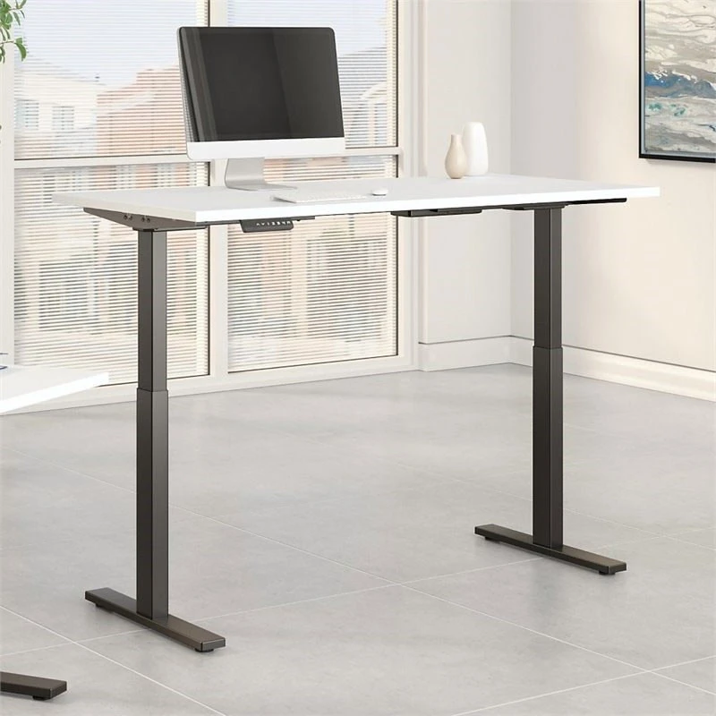 Move 60 Series by Bush Business Furniture 72W x 30D Height Adjustable Standing Desk – M6S7230WHBK. Work in style and comfort with this Bush Business Furniture 400 Series Height Adjustable Standing Desk. The ergonomic Desk with Credenza combination inspires creativity with a sturdy construction, user friendly features and refreshingly contemporary looks. Sit and stand without leaving your workspace or sacrificing productivity with the Height Adjustable Standing Desk. See the full collection for coordinating items available.